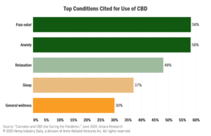 As the pandemic continues, the leading reasons for marijuana and hemp-derived CBD use become more relevant as consumers seek ways to manage increasing stress and anxiety, Brace said.